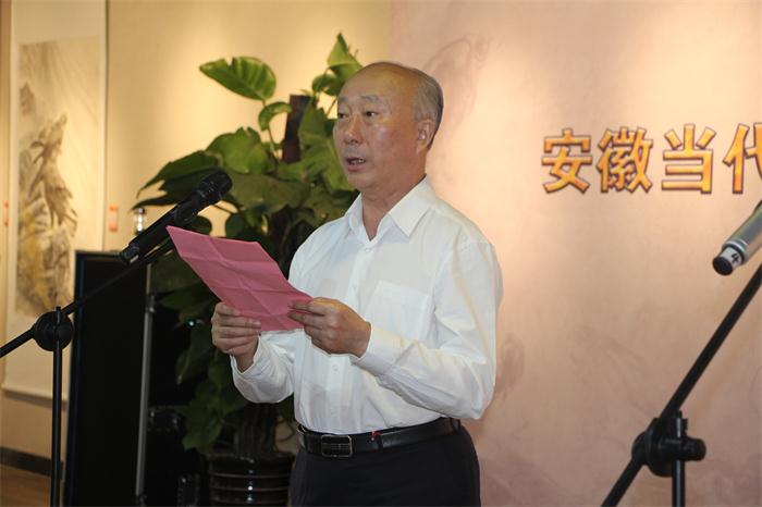 季宇主席宣读“艺术为人民 安徽当代书画艺术家助力精准扶贫捐赠倡议书”:伟大的事业需要伟大的精神;伟大的事业需要集体的力量;伟大的事业需要无私的奉献。倡导广大艺术家以文艺凝聚夯实团结奋进的思想基础,勇于担当,以必胜的信心、昂扬的斗志奔赴扶贫一线,以“铁肩担道义”的社会责任感,以深入生活、扎根人民创作出的精品力作为脱贫奔小康筹措资金、贡献力量。