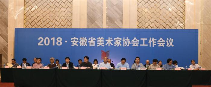 在工作会议之前,5月9日召开了安徽省美术家协会第六届主席团第七次会议,省文联党组书记、书记处第一书记何颖,省文联主席吴雪出席了会议,何颖书记对省美协主席团在全省美术工作中作出的重要贡献给予充分肯定,希望主席团进一步加强思想引领,发挥好模范带头作用;对省美协提出了树立高质量的发展理念、延伸服务工作手臂、进一步打造互联网宣传平台、抓住深化改革契机优化机构设置、建设学习型协会的要求;并期待广大美术工作者坚持政治水准和艺术水准的双重提高,坚持正确的创作定位,树立精品意识。此外,省美协主席团听取了关于“新时代新徽派——安徽书画40年精品晋京展”和申报第十三届全国美展壁画展的筹备情况汇报,讨论了安徽省美术家协会2018年工作报告等议题。